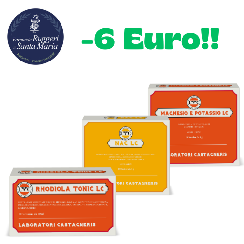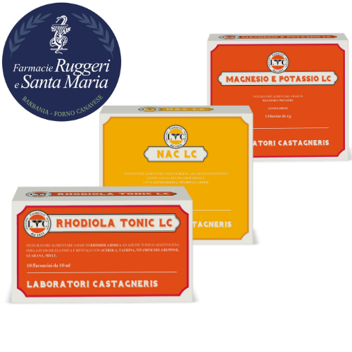 QUESTA BOX CONTIENE: 1 RHODIOLA TONIC LC, 1 MAGNESIO E POTASSIO LC, 1 NAC LC